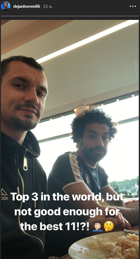 "В тройке лучших игроков мира, но этого недостаточно для символической сборной?" — написал Ловрен в "сториз" Инстаграма, прикрепив свое с Салахом фото.
