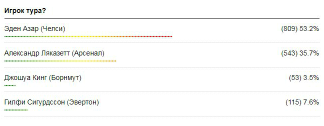 За Эдена Азара проголосовало 53,2% посетителей Football.ua, что позволило ему занять первое место в опросе.