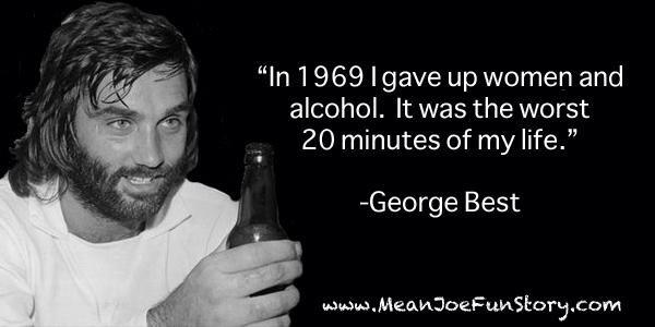 Я чув, як Френк Уортінгтон, форвард Лестера, якось зауважив, що мріє лягати спати останнім на цілому світі. Так от мені вдалося зробити його мрію реальністю. Друзі стверджували, що вони п’ють стільки само, скільки я, але це була неправда. Якщо якийсь клуб зачинявся о другій ранку, вони йшли вкладатися в ліжко. А я вирушав в клуб, котрий працював до шостої. А коли я повертався додому, то вже не лягав, оскільки знав, що о дев’ятій мене, наче магнітом, потягне до пабу», – розповідав Джордж про свою алкогольну одіссею.