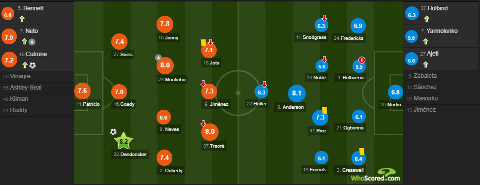 За этот поединок Ярмоленко, как и его партнер по команде Марк Нобл, получил оценку 5,8 от портала WhoScored,которая стала худшей в составе обеих команд.