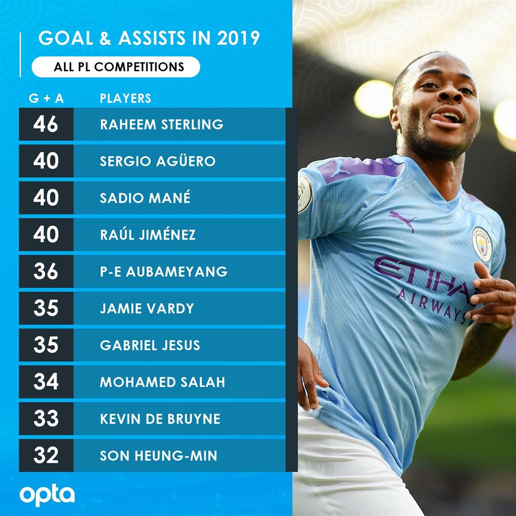 Вингер Манчестер Сити в 2019 году отметился 35 голами и 11 ассистами во всех турнирах за Манчестер Сити. Это наилучший показатель среди всех футболистов, выступающих в английской Премьер-лиге, сообщает Opta.