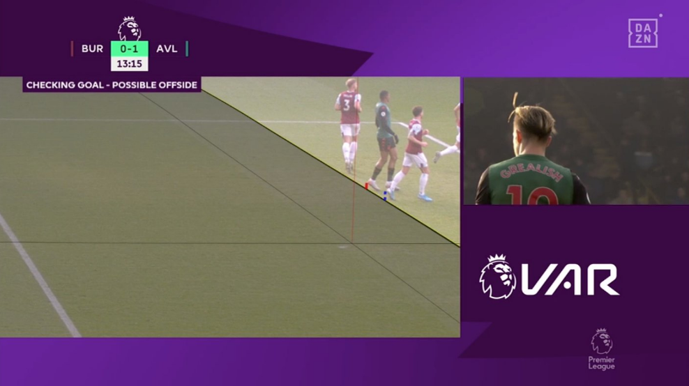 Полузащитник Астон Виллы Джек Грилиш открыл счет в матче с Бернли в начале первого тайма, однако гол не был засчитан из-за спорного офсайда.