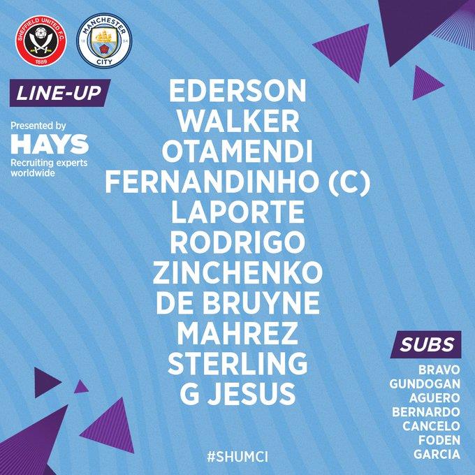 В запасе остались Браво, Гюндоган, Агуэро, Бернарду Силва, Канселу, Фоден и Эрик Гарсия.