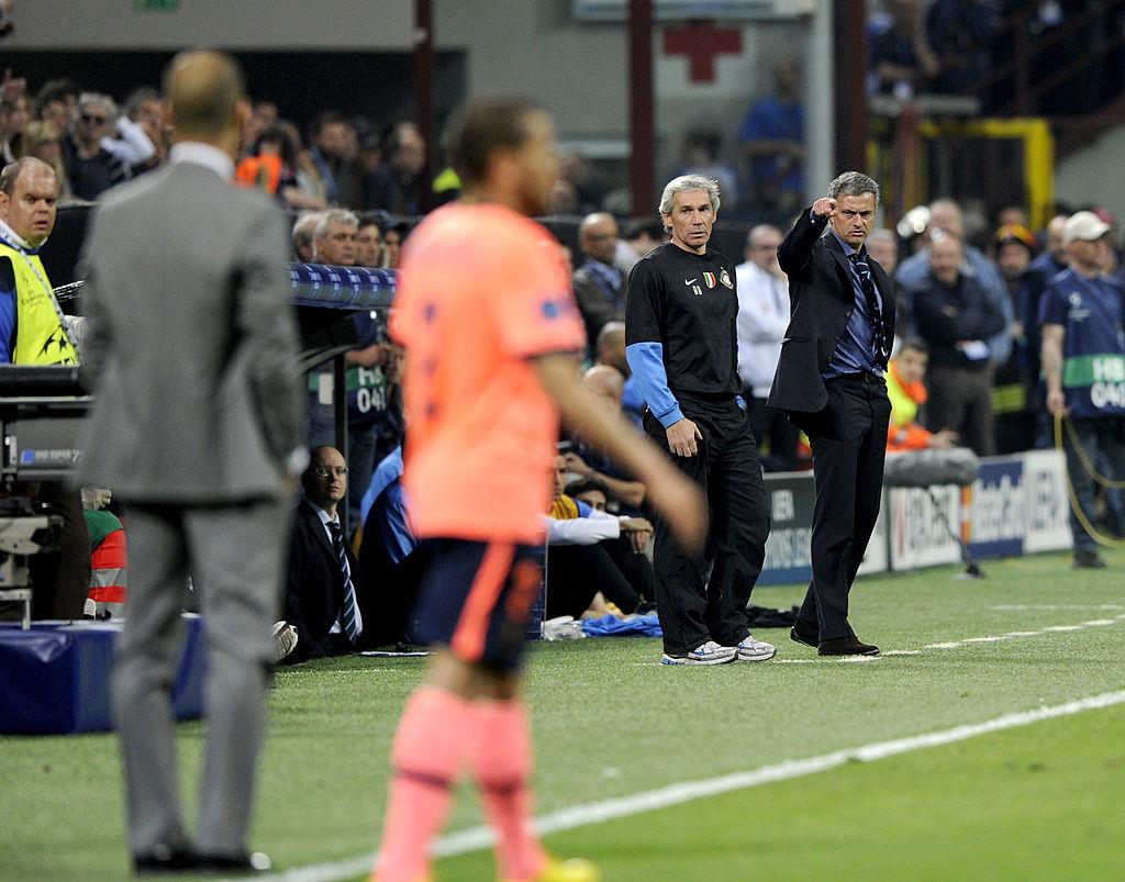 Моуриньо и Гвардиола впервые встретились в сезоне-2009/10, находясь во главе соответственно Интера и Барселоны. Сперва команды сошлись на групповой стадии и обе вышли в плей-офф, но затем им предстояло встретиться и в полуфинале турнира. Барселона находилась в статусе действующего обладателя трофея и считалась фаворитом пары, но Моуриньо проявил свой тренерский гений и смог нейтрализовать каталонский коллектив.