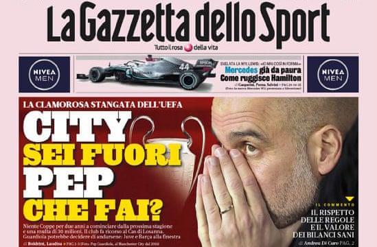 Запрет "горожан" на участие в ЛЧ стал главной новостью для всех ведущих спортивных газет Италии. Например, La Gazzetta dello Sport считает, что эта новость "потрясла весь мировой футбол, а не только английский, поскольку стратегия ведения финансовых дел, как у "горожан", свойственна большому количеству футбольных клубов".