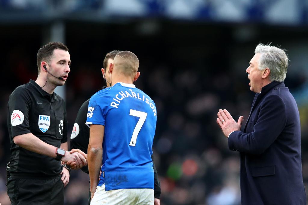 Анчелотти отправился выяснять отношения к рефери, после чего тот показал тренеру красную карточку. Наставник Эвертона прокомментировал данный эпизод.