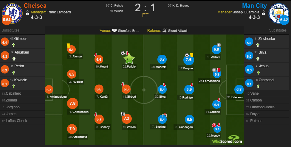 За этот поединок Зинченко получил оценку 5,9 от портала Whoscored. Такую же оценку заработал и Фернандиньо, который получил красную карточку и привез пенальти, а хуже в составе "горожан" был лишь Менди 5,6.