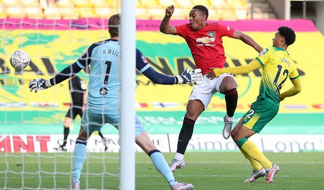 В первом матче 1/4 финала Кубка Англии Норвич принимал Манчестер Юнайтед. Уле-Гуннар Сульшер решил выпустить с первых минут экспериментальный состав, предоставив шанс многим резервистам. Гости сразу же после стартового свистка завладели игровым и территориальным преимуществом, рассчитывая забить быстрый гол. Однако это не произошло, поскольку в последней трети поля манкунианцы действовали недостаточно остро. Несмотря на то, что они шли вперед большими силами, вскрыть оборону соперника "красным дьяволам" не удавалось.