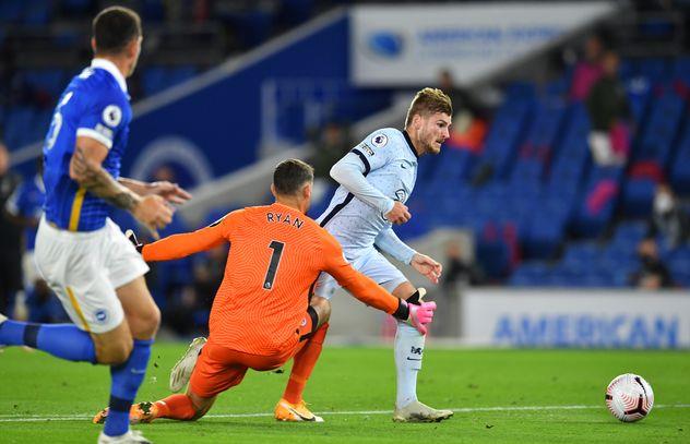 По большому счету, свой единственный верный момент на гол Челси получил лишь благодаря грубой ошибке соперника. Альзате отдал неточный пас в центе поля, после чего скорость Вернера позволила ему быть первым на мяче перед Райаном, который уже по инерции влетел немцу в ноги. Пенальти реализовал Жоржиньо.