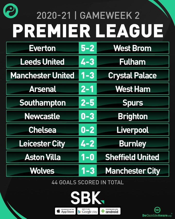 Сразу в трех матчах забили по семь мячей: Эвертон – Вест Бром (5:2), Лидс – Фулхэм (4:3) и Саутгемптон – Тоттенхэм (2:5). Наименее результативным выдался матч Астон Вилла – Шеффилд Юнайтед (1:0).