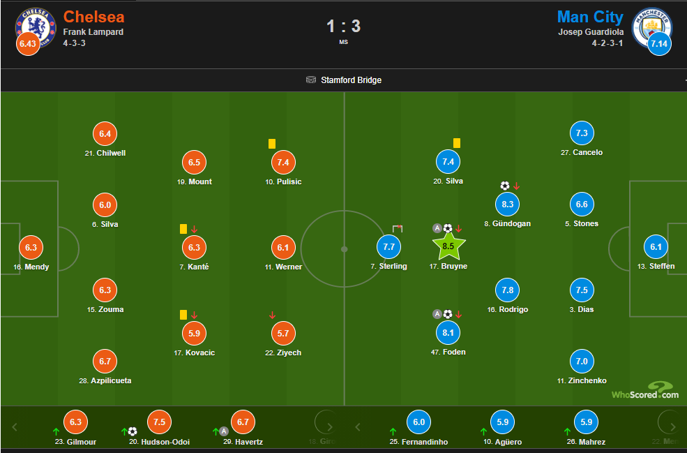 Статистический портал Whoscored оценил игру украинца в 7,0 балла, что является одной из наиболее низких оценок среди игроков стартового состава "горожан". Хуже только у голкипера Зака Стеффена (6,1) и центрбека Джона Стоунза (6,6).