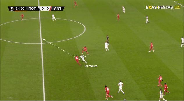 Несмотря на его темп, контратаки, как ни странно, не являются одной из сильных сторон Моуры. Ему удобнее бежать с мячом на защитников, чем врываться за их спины под заброс. Когда он опускается глубоко, чтобы получить пас, его контроль мяча и начало продвижения вперед слишком сильно замедляют атаки Тоттенхэма, поэтому об эффективном использовании его игровых возможностей не могло быть и речи.