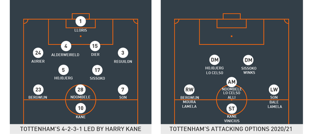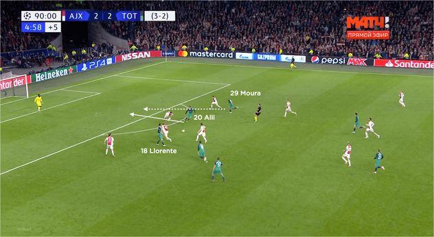 В этой позиции на правом фланге перед игроком состояла задача в том, чтобы он присоединялся к Кейну в качестве центрального нападающего, а атакующий полузащитник Деле Алли обеспечивал поддержку им со спины. Дополнительная опция при подобной тактике — уход Моуры с фланга с целью создания пространства для Сержа Орье, что приводит к численному превосходству перед чужой штрафной.