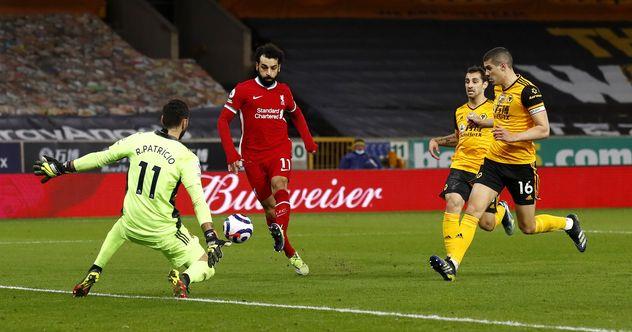 К сожалению, команды в дальнейшем не стали увеличивать скорости своих атак, поэтому мы увидели достаточно скупой на голевые моменты первый тайм. Вулверхэмптону не хватало акцентов в завершении фланговых наступлений, а Ливерпуль, с его тактикой играть через длинный пас в контратаку, подобных ситуаций для быстрого выхода получал слишком мало. Но! Это не значит, что их не было вовсе. К примеру, чем не голевой момент был у Мане на 13-й минуте, когда Садио ушел на скорости от Патрисиу в левый фланг штрафной, но с острого угла бить по полупустым воротам так и не решился?