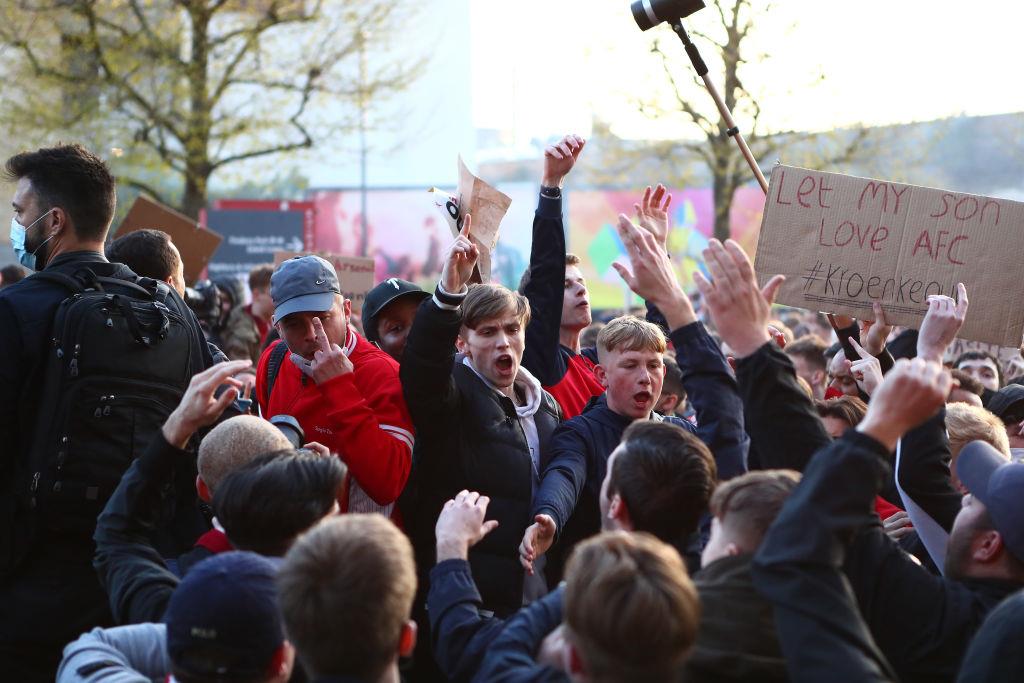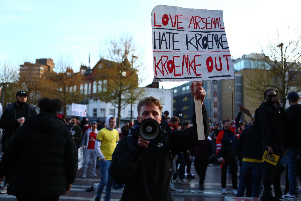 Болельщики лондонского Арсенала перед домашним матчем с Эвертоном устроили акцию протеста против владельца клуба Стэна Кронке.