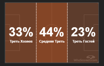 Практика на всех уровнях доказывает, что 20%-25% активных действий на трети поля оппонента вполне достаточно для достижения положительного результата в матче. Часто, показатель, который превышает 30% говорит не о преимуществе команды, которая на него наиграла, а, наоборот, о проблемах в структуре позиционной игры в атаке или недостаточно высокой скорости взаимодействий игроков. Соперник плотно перекрывает центральную зону, и преимущество во владении набегает в основном за счет стерильного контроля.