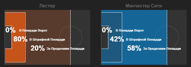 Несмотря на то, что Сити нанес большее количество ударов по воротам, Лестер имел больше явных голевых моментов. Да и ударов в створ у "горожан" маловато – всего 3. Причем, Лестер 80% своих ударов нанес из пределов штрафной, а Сити – всего 42%. Один Варди обязан был оформлять дубль еще в первом тайме.