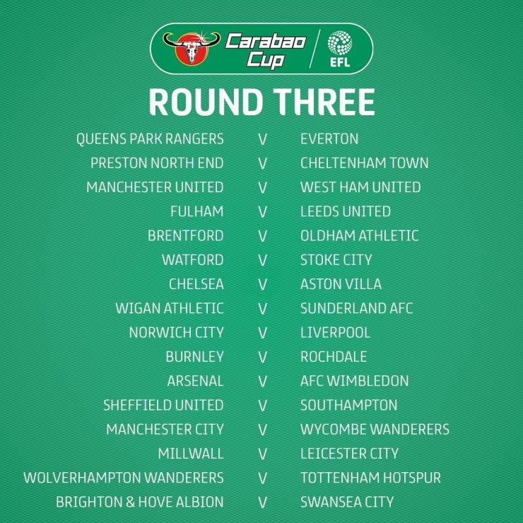 Вест Хэм, в котором выступает украинский вингер Андрей Ярмоленко, встретится с Манчестер Юнайтед, а Манчестер Сити вместе с защитником сборной Украины Александром Зинченко будет противостоять Уикомбу Уондерерсу.