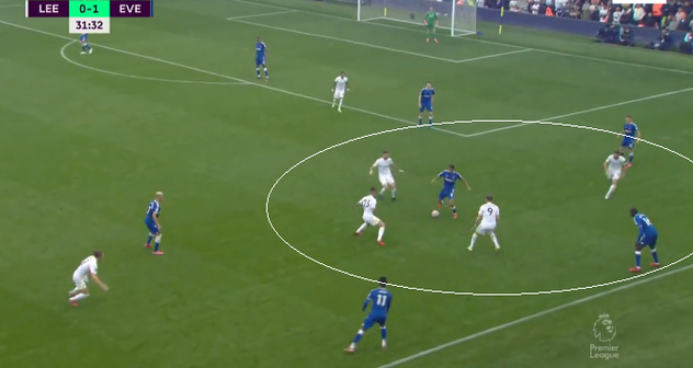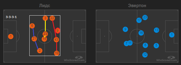 Обратите внимание на карту усредненных позиций из матча с Эвертоном. Лидс отличается компактностью, которая необходима команде для эффективного использования контрпрессинга.