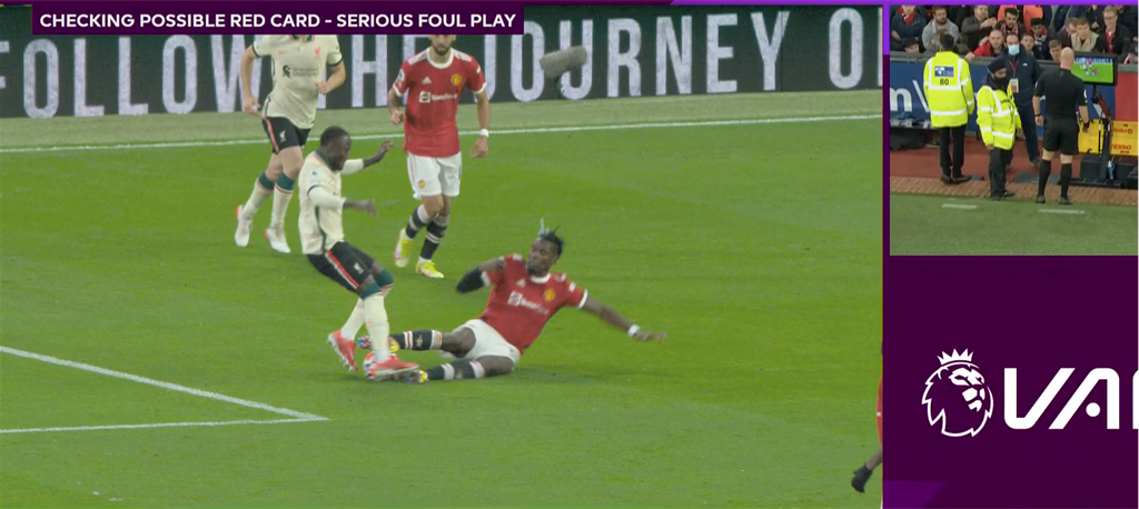 Главный арбитр встречи сперва показал Погба желтую карточку, но принял окончательное решение после просмотра VAR.