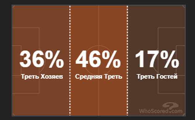 В период с 60 по 75 минуты матча гости владели мячом 86% игрового времени, а соотношение точности передач было 67%:93%. И это, когда хозяева "горели" и должны были спешить отыгрывать два мяча.