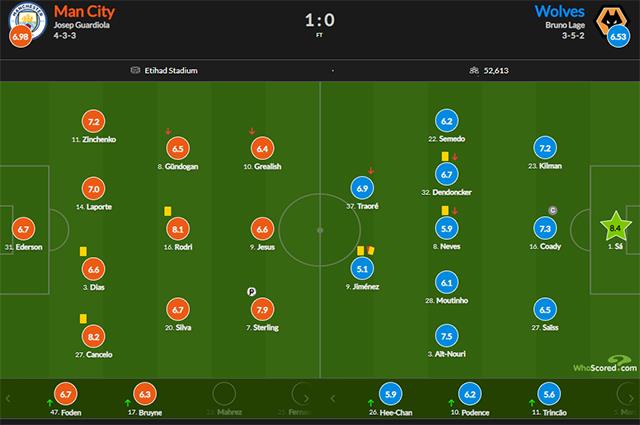 Авторитетный портал WhoScored оценил игру украинца в 7,2 балла, что является четвертой оценкой в составе "горожан" после Жоау Канселу (8,2), Родри (8,1) и Рахима Стерлинга (7,9). Лучшим игроком матча был признан вратарь "волков" Жозе Са.