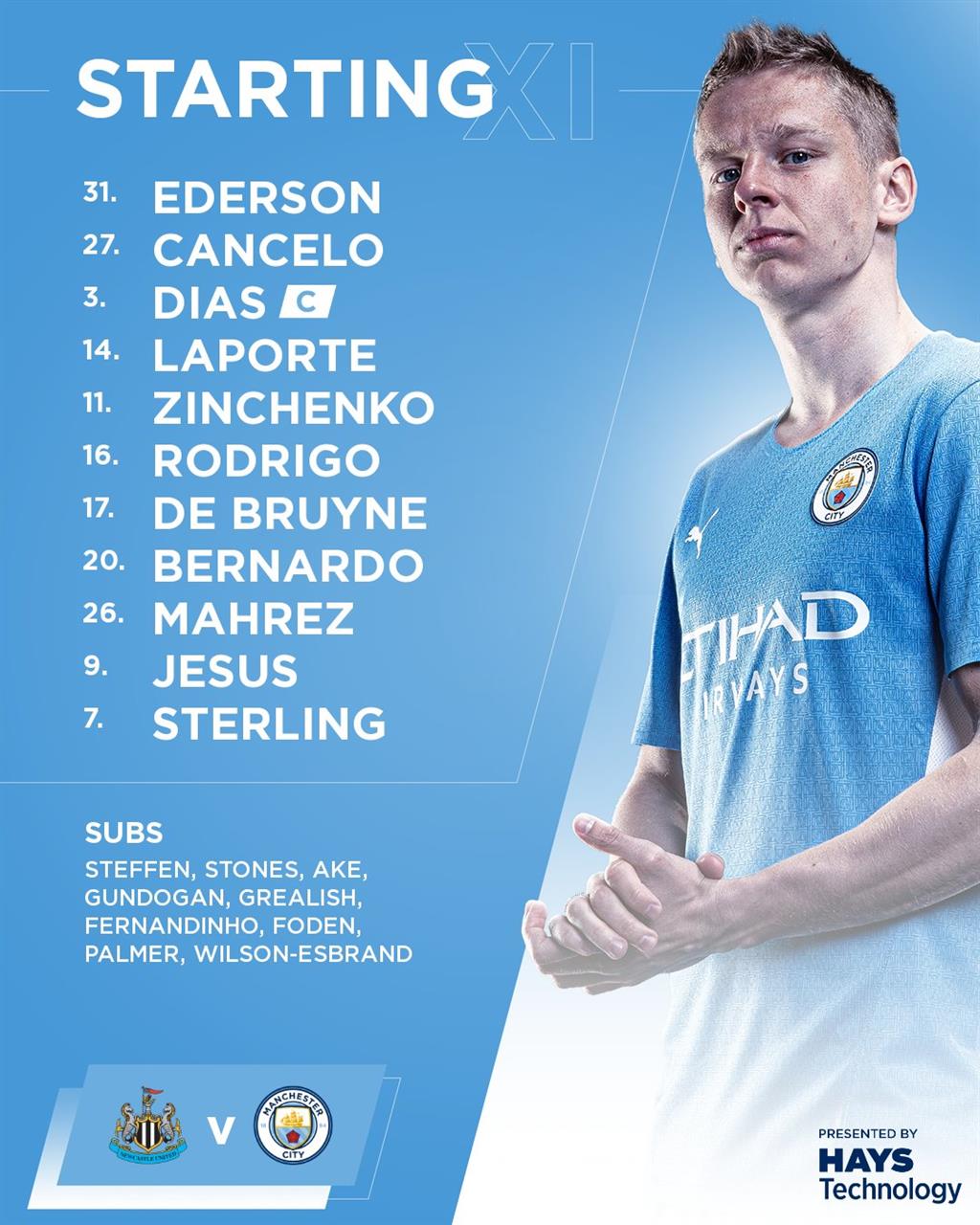 Манчестер Сити: Эдерсон — Канселу, Диаш, Ляпорт, Зинченко — Де Брюйне, Родри, Бернарду — Марез, Жезус, Стерлинг