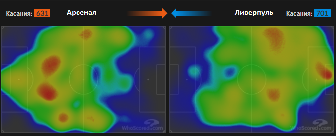 В целом, лондонцы более активно взаимодействовали на левом фланге/полуфланге – 46% от общего количества действий. Практически аналогичные цифры в показателях направления атак и у Ливерпуля.