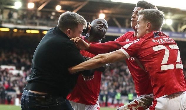 Фанат "лис" выбежал на поле после гола Форрест с намерением избить футболистов. В итоге его увели с поля после того как мужчина нанес несколько ударов футболистам.