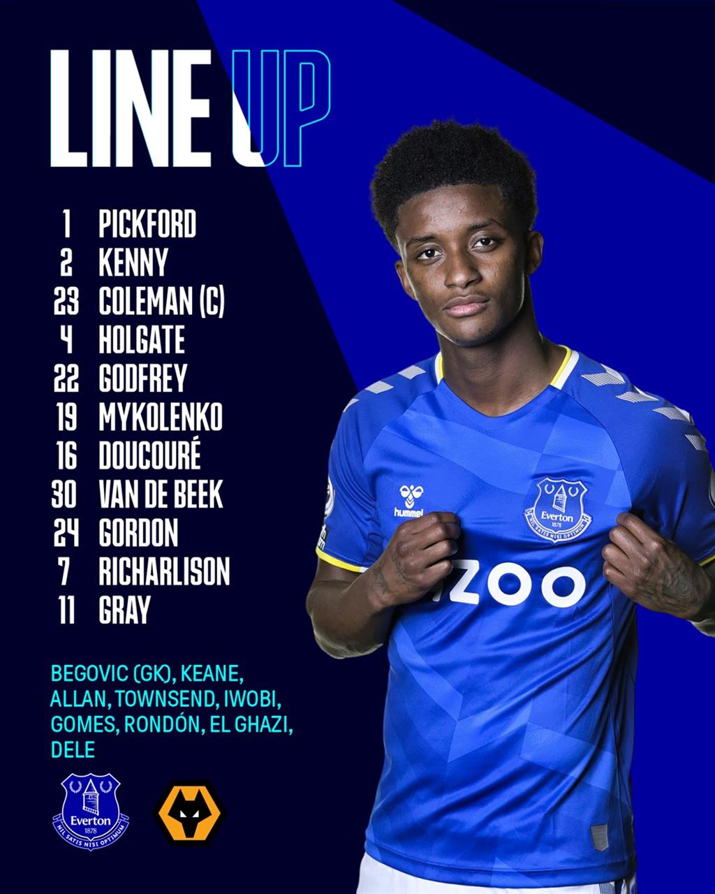 Захисник Віталій Миколенко потрапив до стартового складу Евертона і розпочне матч з перших хвилин.