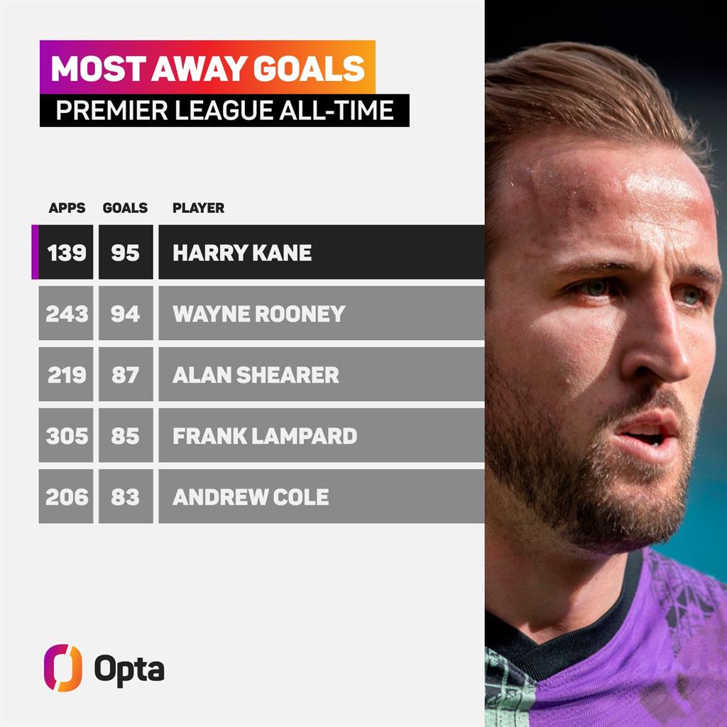 Як повідомляє спеціалізований портал Opta, Гаррі забив 95 гол під час гри своєх команди на виїзді, завдяки чому одноосібно очолив рейтинг голеадорів за цим показником.