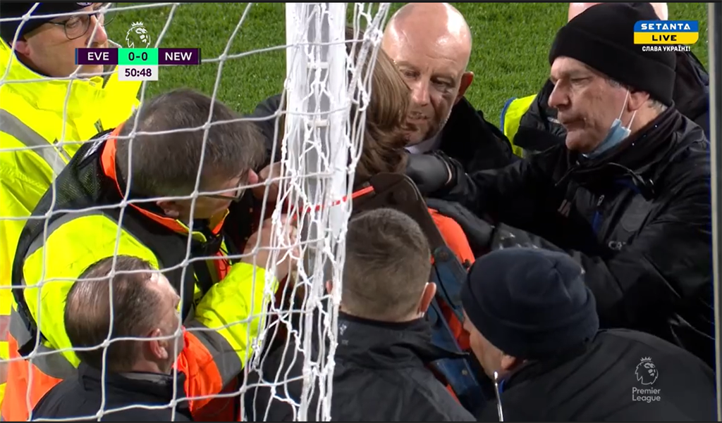 Зрештою, вболівальника через хвилин п'ять-шість буквально на руках винесли з поля поліція та стюарди, а деякі фанати навіть спробували заступитися за хлопця.