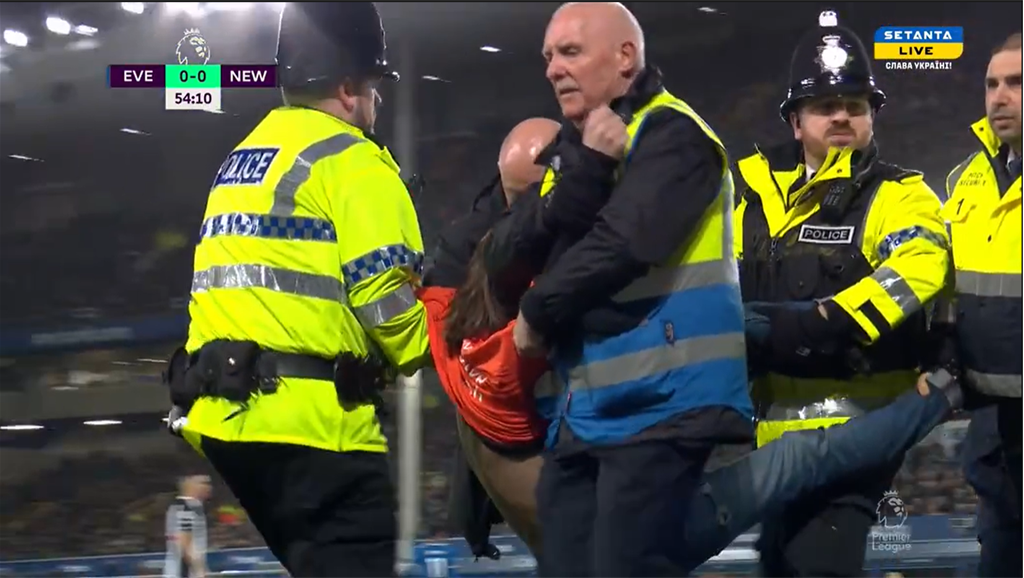 На початку другого тайму головний арбітр зустрічі Крейг Поусон був змушений зупинити гру через фаната, що вибіг на поле у футболці "Just Stop Oil" та прив'язав себе за шию до штанги воріт хомутом. Метою цих дій було звернути увагу світу на забруднення планети від видобутку нафти.