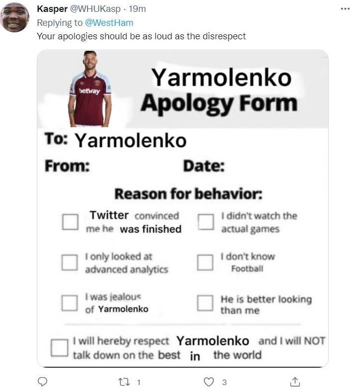 "Ярмола – сертифікована легенда Вест Гему! Ми любимо тебе!"
