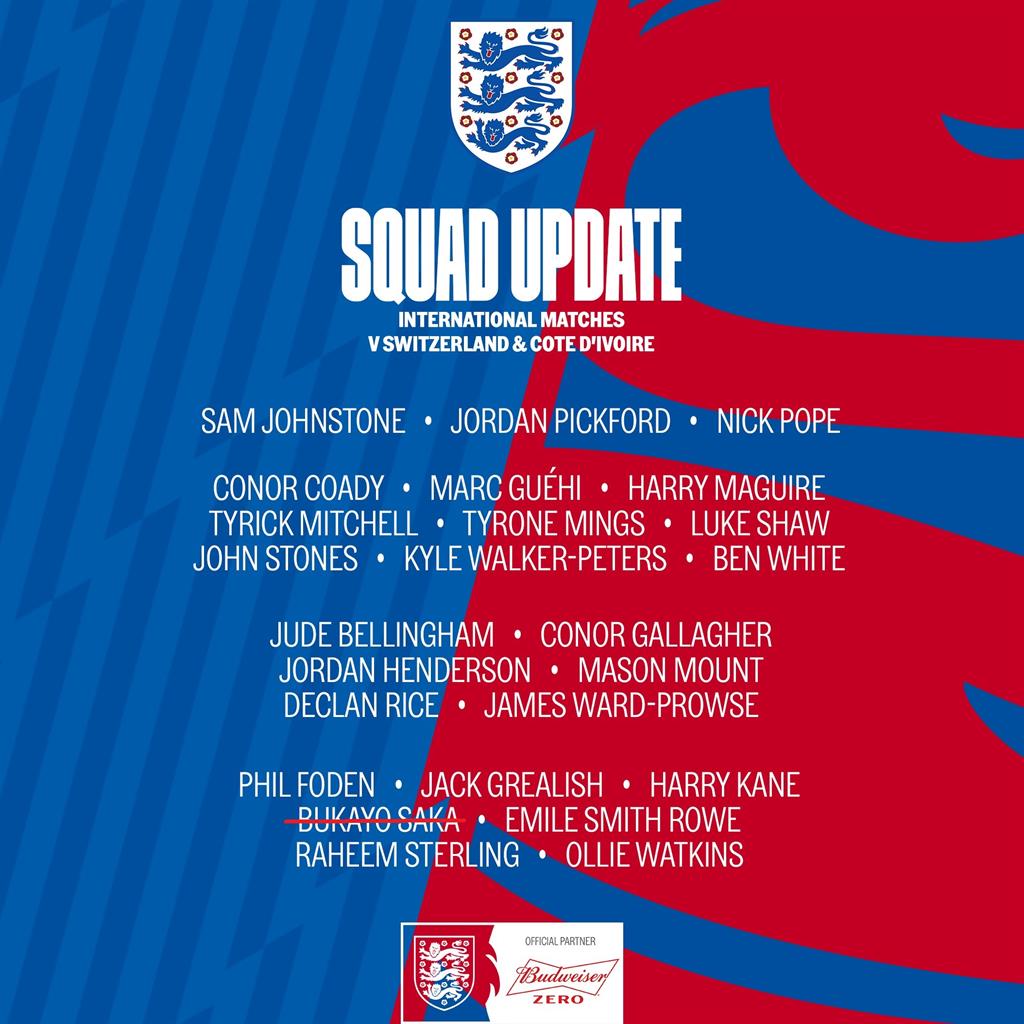 Спершу головний тренер "трьох левів" Гарет Саутгейт втратив викликані в розташування команди Трента Александера-Арнольда, Ріса Джеймса, Теммі Абрахама і Аарона Ремсдейла, а тепер стало відомо про від'їзд зі збірної Англії вінгера Арсенала Букайо Сака.