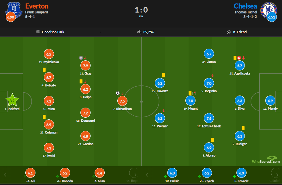 Найкращим гравцем матчу голкіпер Евертона Джордан Пікфорд. Він отримав від аналітиків 8,5. Найгіршим став капітан Челсі Сезар Аспілікуета — 5,7.