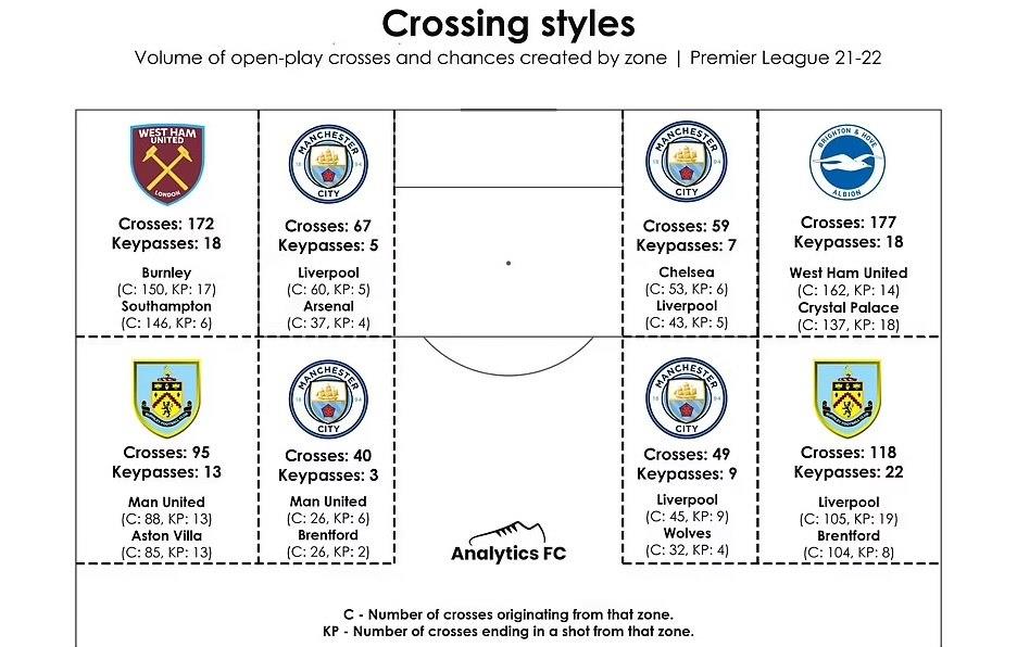 Сезон-2021 /22 Манчестер Сіті закінчив у статусі лідера за всіма можливими передачами із зони напівфлангів. Напівфланги – взагалі квінтесенція розумної гри від Гвардіоли: саме звідти найчастіше де Брейне, іноді Канселу, а колись і Зінченко розкривали оборону пасом. Але такі трансфери, як Кукурелья та Холанд , мають покращити позицію Сіті у класичному британському компоненті гри: подачах із флангу. До речі, для подач з правого флангу нікого купувати не потрібно: є Кайл Вокер, контракт якого діє ще два роки.