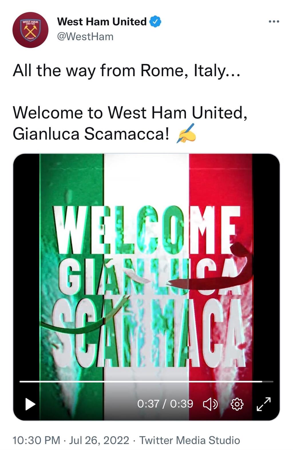 Джанлука Скамакка, twitter.com/WestHam
