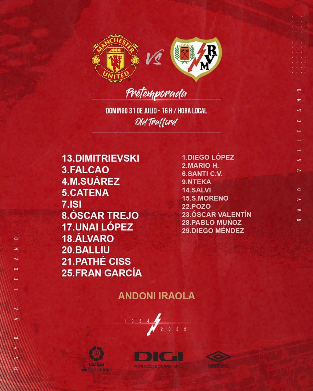 За "червоних дияволів" забивав Амад Траоре, тоді як за Райо забитим м'ячем відзначився Альваро Гарсія.