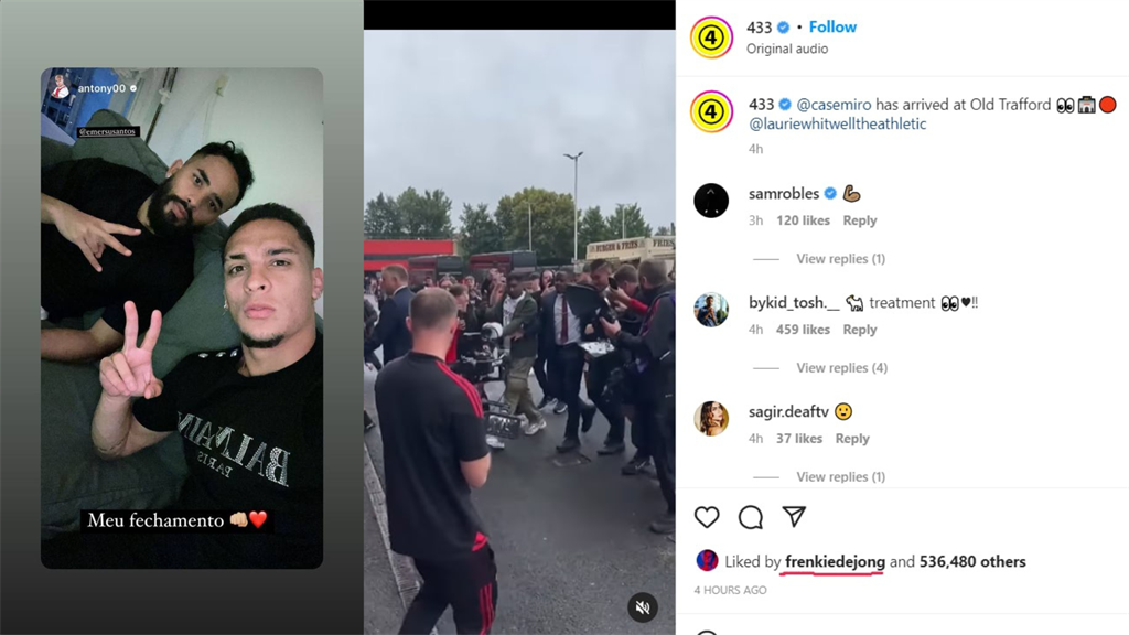 Що стосується де Йонга, то нідерландський хавбек вподобав публікацію в Instagram, де півзахисник Каземіро прибув у розташування свого нового клубу.