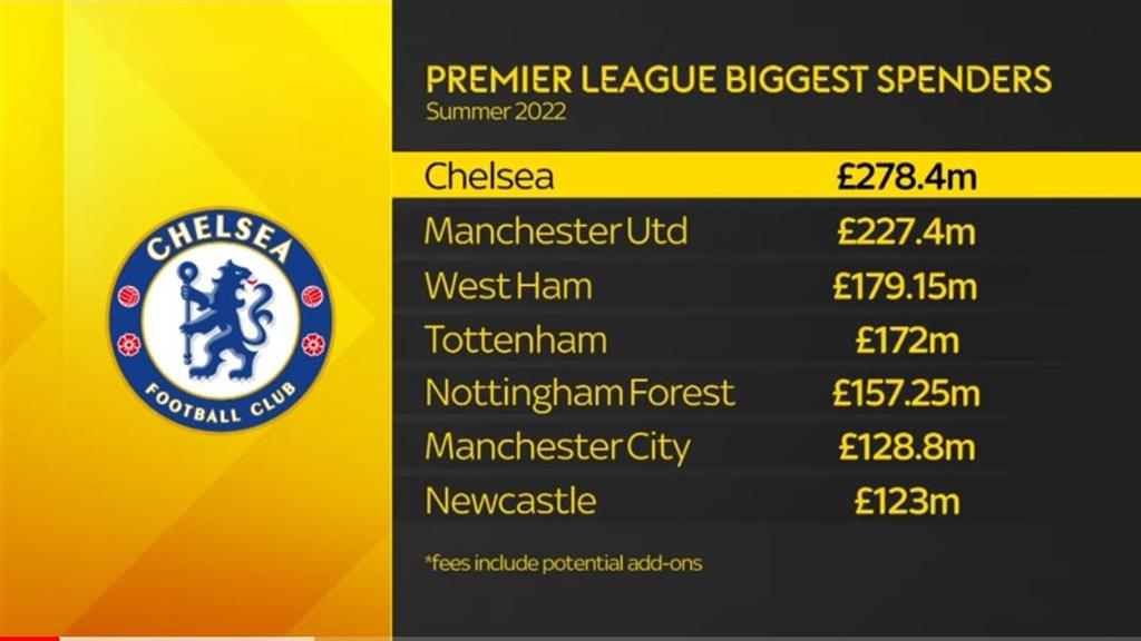 Когось може здивувати лідерство Челсі, котрий начебто "динамили" із трансферами інші клуби, у тому числі, Барселона, але подібні цифри вдалося досягнути за рахунок недешевих переходів Веслі Фофана (80,50 млн євро), Марка Кукурельї (65,30 млн євро), Рахіма Стерлінга (56,20 млн євро) та Каліду Кулібалі (38 млн євро).