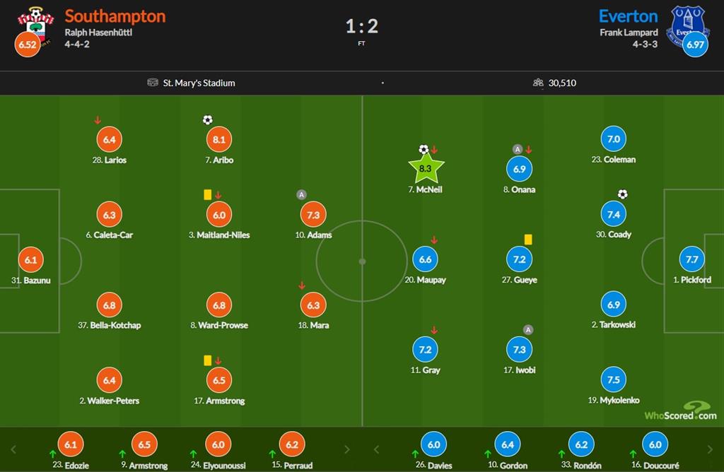 У рамках дев'ятого раунду англійської Прем'єр-ліги Евертон на виїзді переграв Саутгемптон з рахунком 1:2.