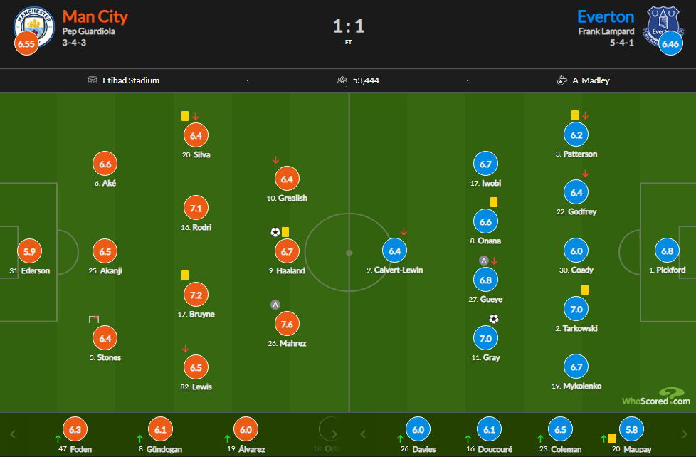 У матчі 18 туру англійської Прем'єр-ліги Манчестер Сіті на своєму полі не зміг обіграти Евертон (1:1).