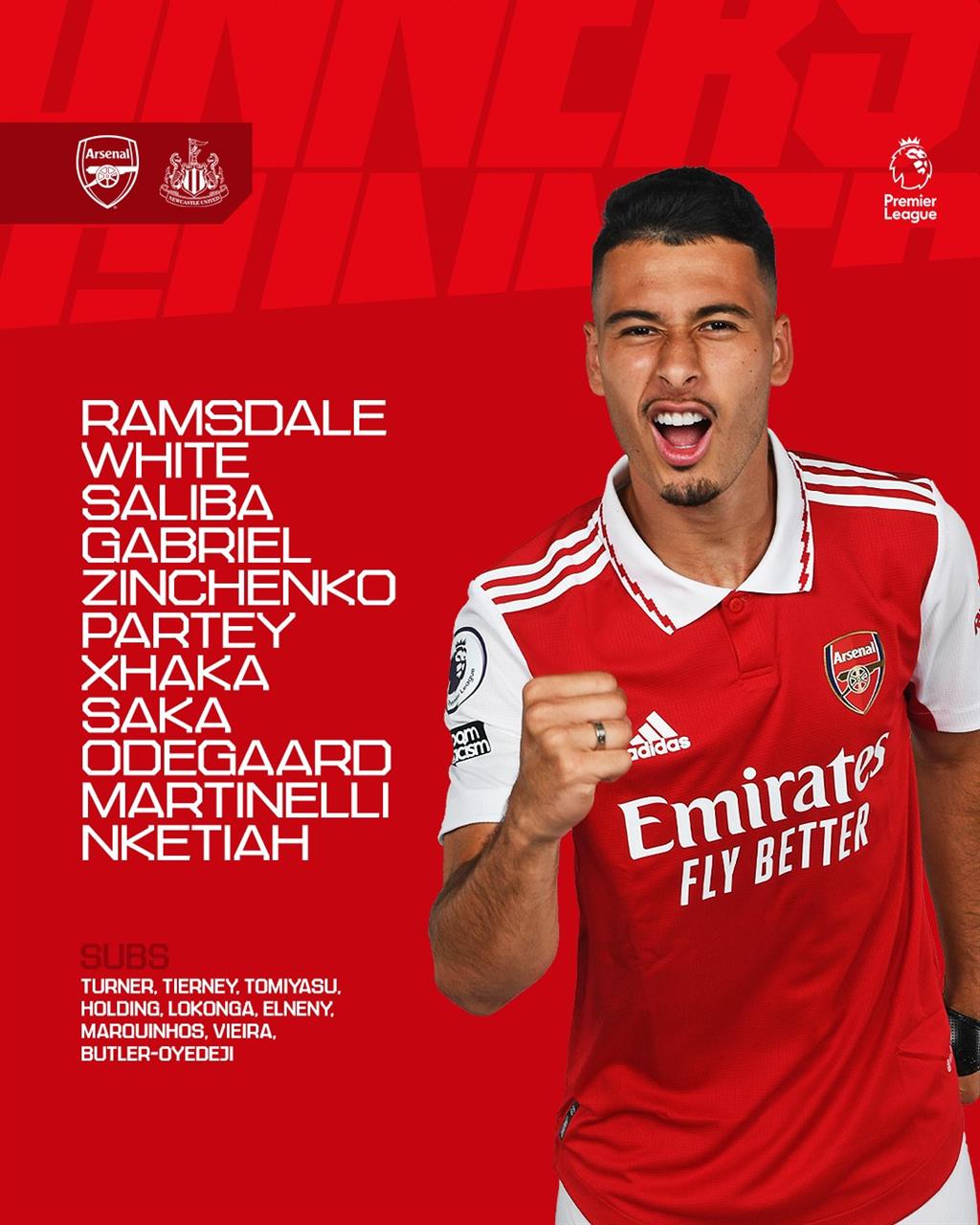 Арсенал (старт): Рамсдейл — Вайт, Саліба, Габріел, Зінченко — Парті, Джака, Едегор — Сака, Нкетіа, Мартінеллі