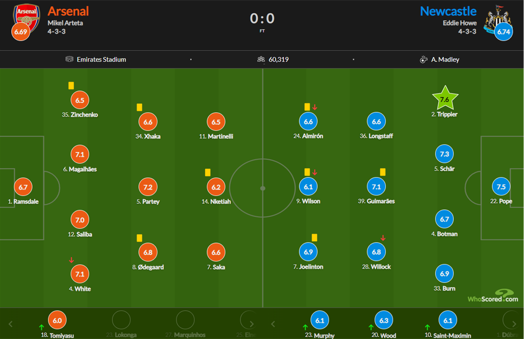 У рамках 19-го туру англійської Прем'єр-ліги лондонський Арсенал у напруженому центральному матчі розійшовся безгольовим миром із Ньюкаслом.