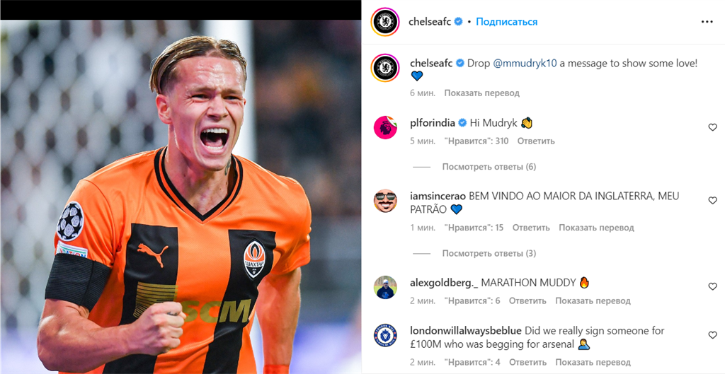 А пізніше вже в соціальній мережі Instagram Челсі попросив своїх уболівальників "показати Мудрику трохи любові".