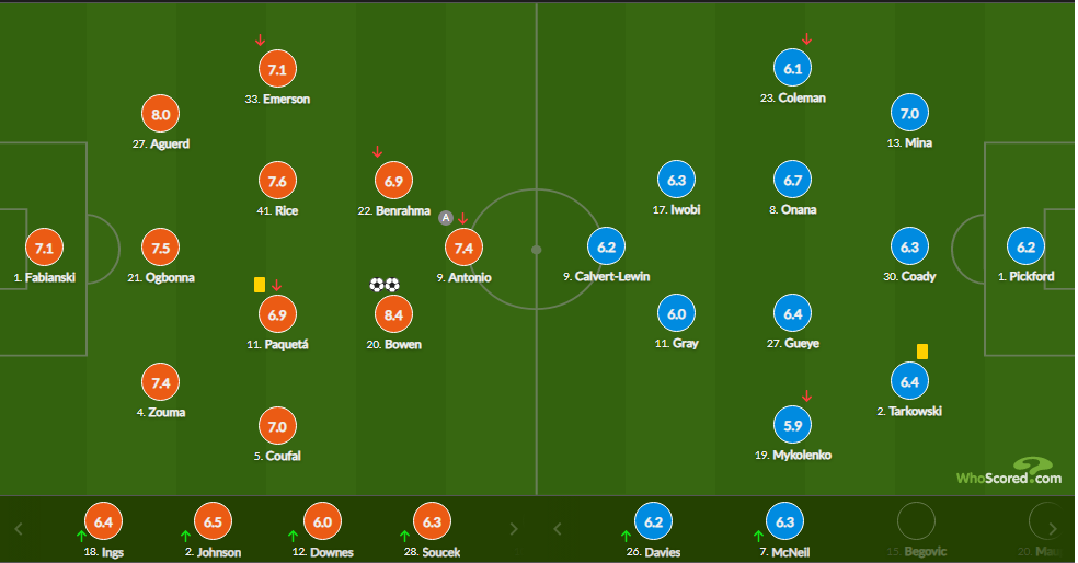 За версією статистичного порталу WhoScored найгіршим футболістом цієї гри став український захисник Евертону Віталій Миколенко — 5,9.