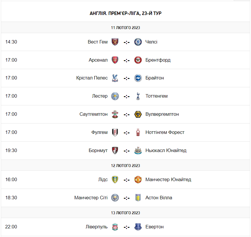 СУБОТА, 11 ЛЮТОГО, 17:00. ЕМІРЕЙТС СТЕДІУМ, ЛОНДОН. ГОЛОВНИЙ АРБІТР — ПІТЕР БЕНКС