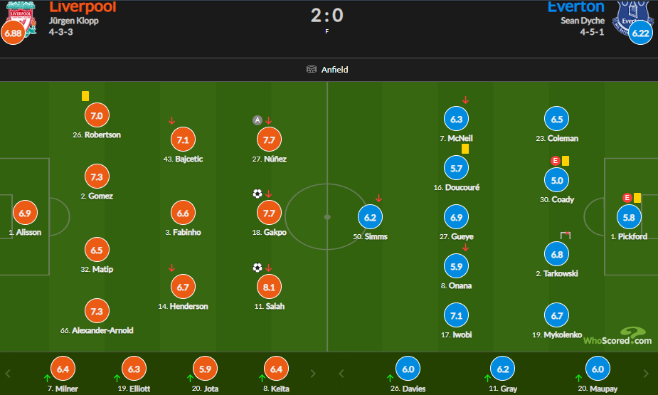 Більше за нього в складі Евертона отримали лише Гана Гуйє (6,9 бала), Алекс Івобі (7,1) та Джеймс Тарковскі (6,8).