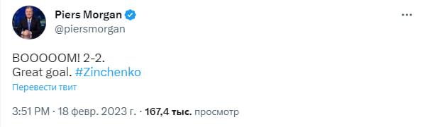 Спромігся похвали Олександр Зінченко за свій гол від журналіста Пірса Моргана.